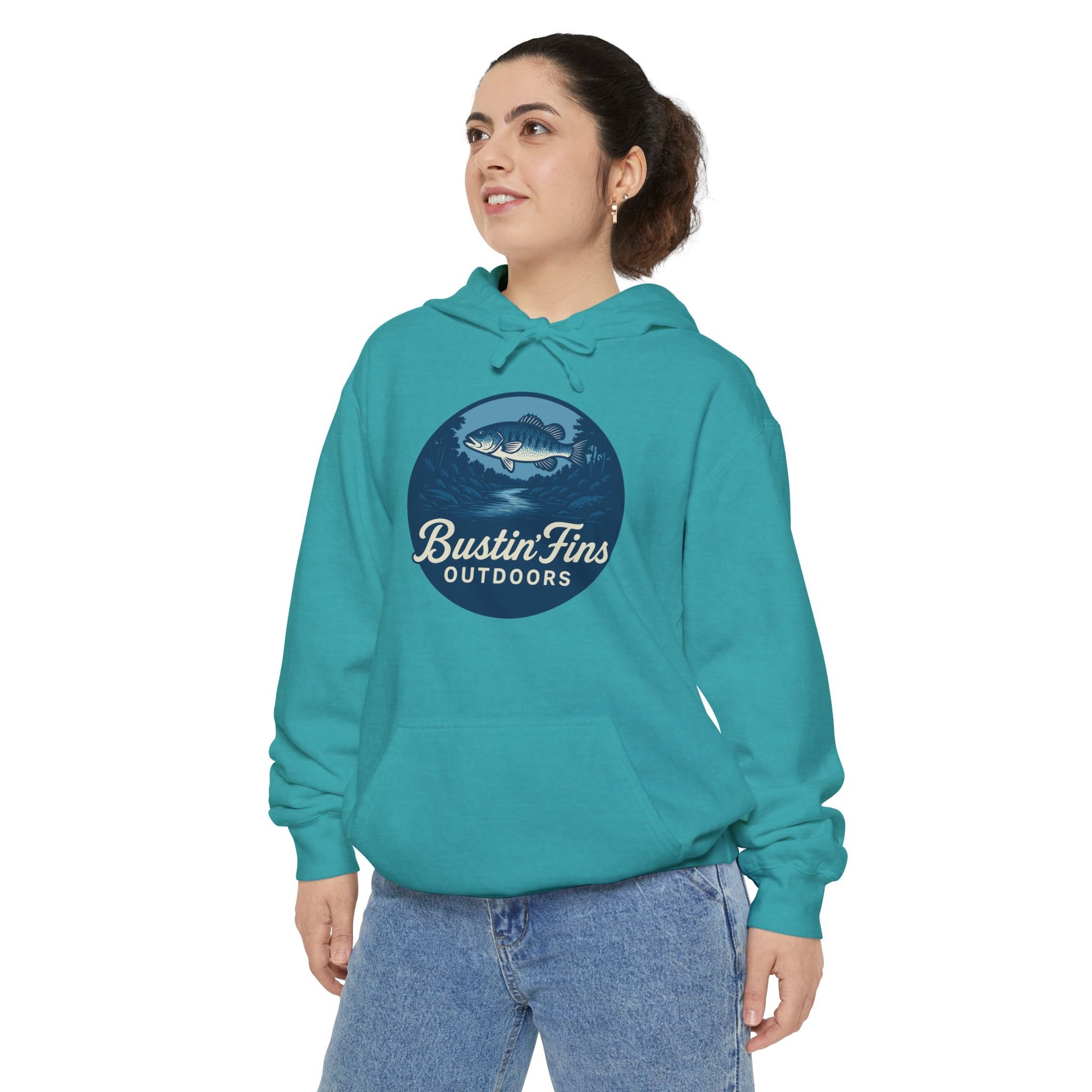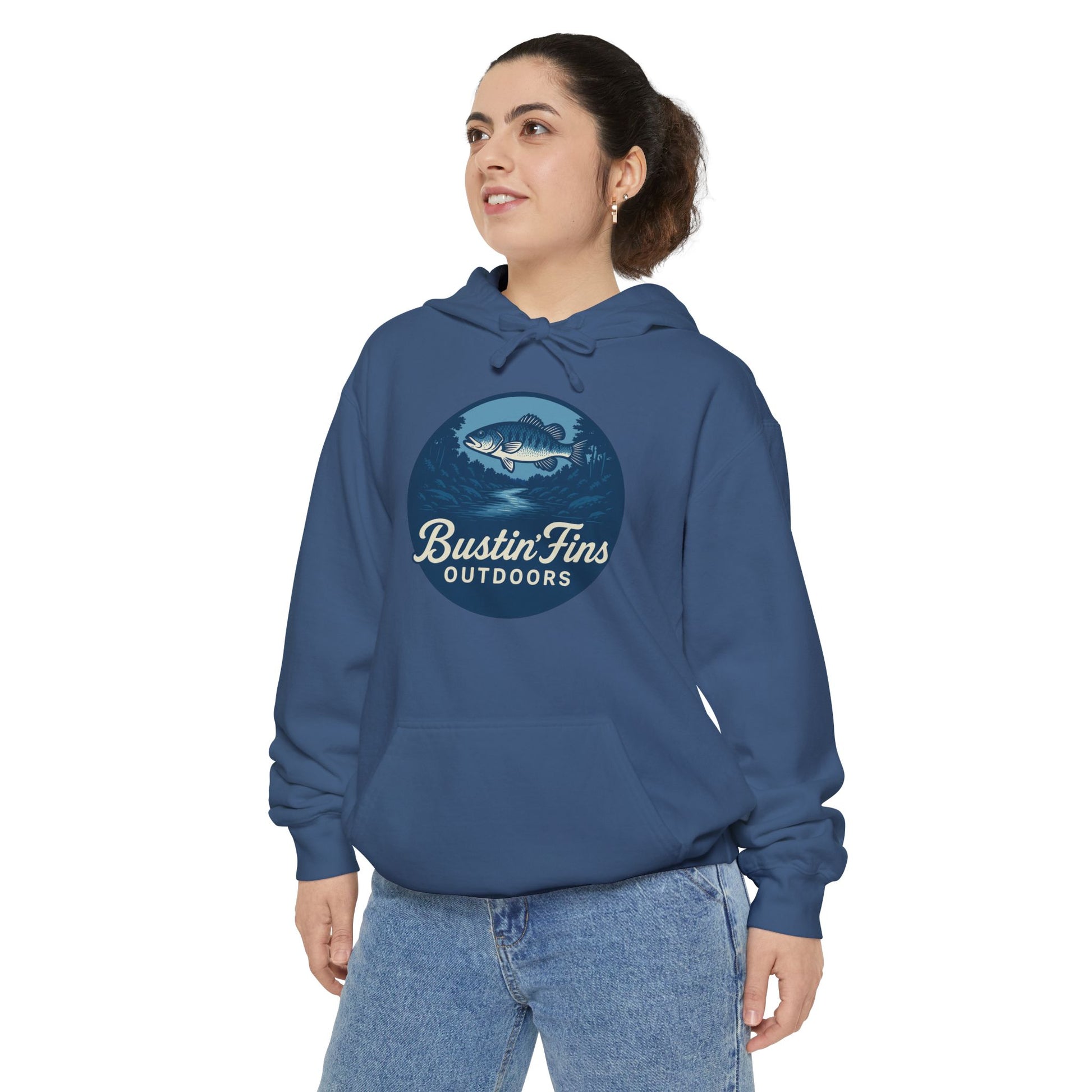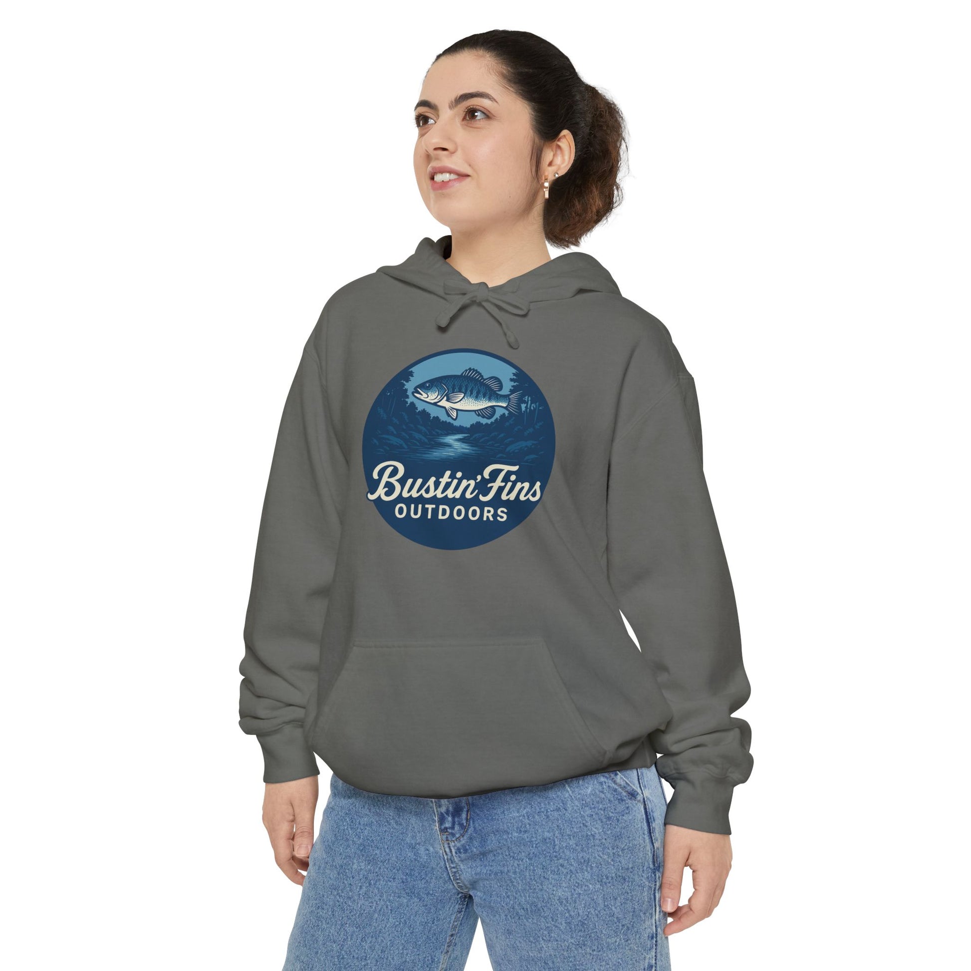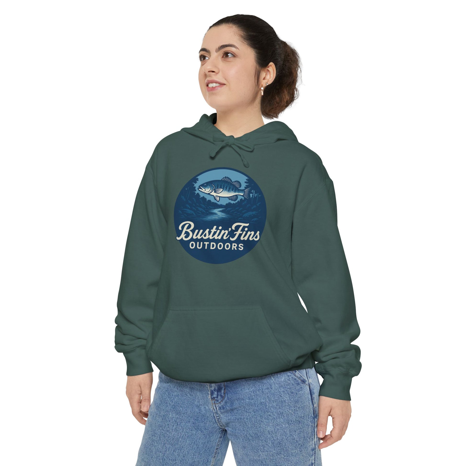 A garment-dyed, heavyweight hoodie built for slow mornings on the water and wind-swept evenings at the dock. The soft ringspun cotton blend has a lived-in feel from the first wear, while the relaxed cut and ribbed cuffs keep you comfortably warm without feeling restricted. The front pocket artwork — a vintage-inspired fishing badge with a leaping bass — speaks to long days chasing fish and swapping stories around the campfire. Wear it over a tee after an early-morning cast, or layer it under a jacket when the air turns crisp. The understated back and clean hood details make it a rugged, wearable piece that ages beautifully with every trip out.