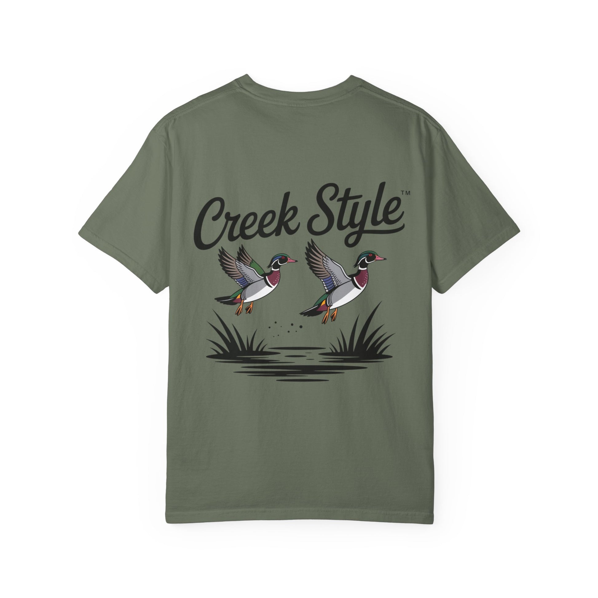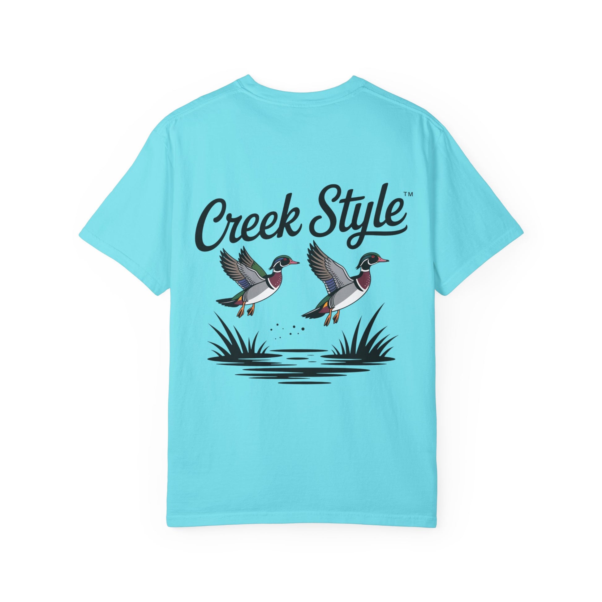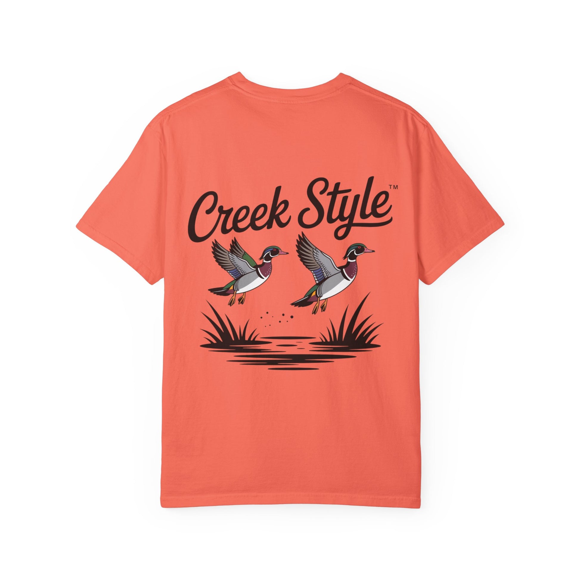 Discover effortless style with this cozy unisex garment-dyed t-shirt. Perfect for casual outings or laid-back gatherings, this tee radiates a relaxed vibe, inviting comfort into your everyday wardrobe. Ideal for nature lovers and those who appreciate a hint of rustic charm, it showcases a beautiful design that celebrates the great outdoors. The relaxed fit and classic crew neckline make it an excellent base for any outfit, whether you're dressing down for a picnic or layering up in cooler weather. This shirt is ideal for gifting during birthdays, holidays, or as a thoughtful token for outdoor enthusiasts who cherish their connection with nature. Fun facts: wood ducks are the only duck to nest high in tree cavities. They are skilled fliers reaching speeds of up to 45-50 mph, and as ducklings are able to jump from heights over 50 feet without injury.